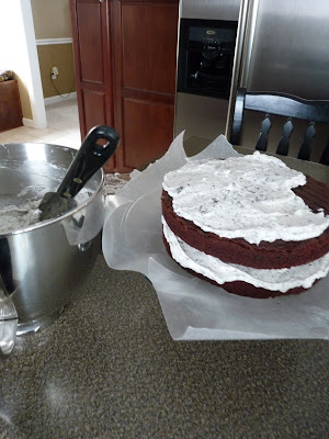 Marzipan gave me the buttercream frosting lesson a while ago and I've become quite proficient at it....but she taught me to wrap my cakes in plastic wrap and freeze them before frosting them....this works terrific! No crumbs! And apparently everyone knows the trick of placing a few pieces of wax paper under the cake so you don't get frosting all over your cake stand.